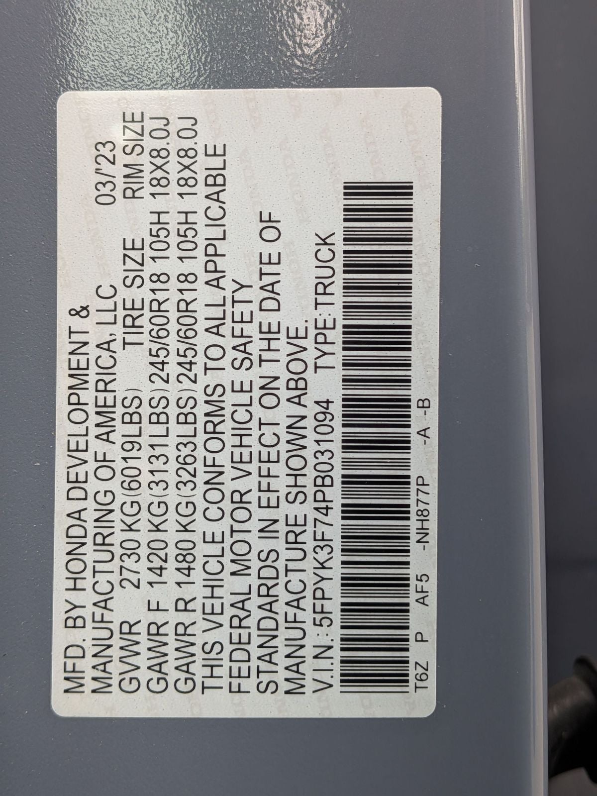 - Vehicle Name: Honda Ridgeline