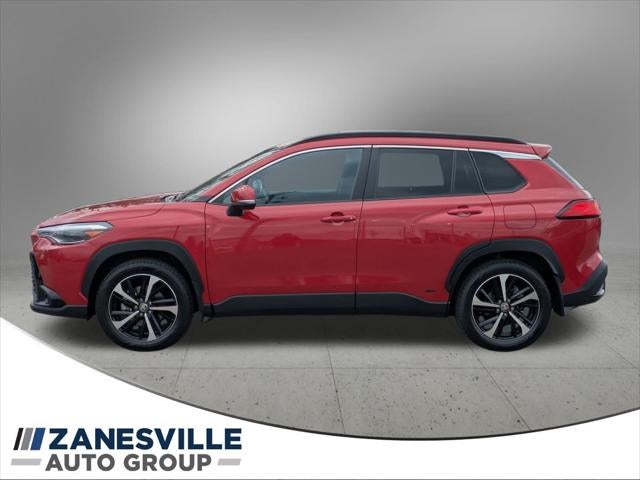 Bluetooth® Hands Free, Backup Camera, All-wheel Drive, Free Lifetime Powertrain on this vehicle!, Heated Leather Seats, Lane Departure Warning, ABS brakes, Active Cruise Control, Alloy wheels, Electronic Stability Control, Front dual zone A/C, Heated door mirrors, Heated Front Bucket Seats, Heated front seats, Illuminated entry, Low tire pressure warning, Remote keyless entry, Traction control. Red 2023 Toyota Corolla Cross Hybrid XSE AWD eCVT 2.0L I4 PDI Hybrid DOHC 16V LEV3-SULEV30 150hp